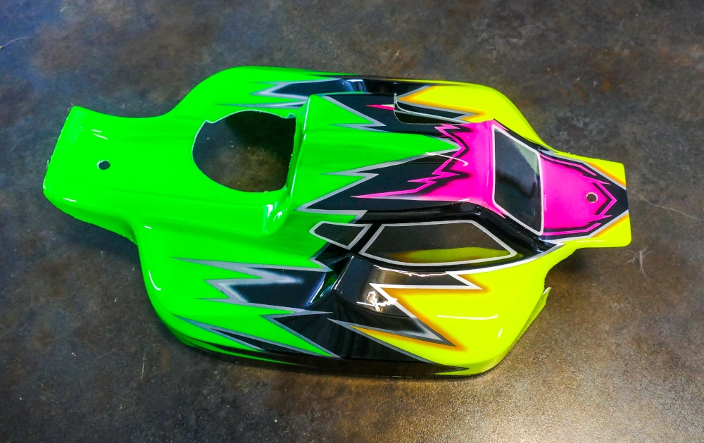 La formule « Prestige » comprend le dépolissage de la carrosserie lexan afin que la peinture accroche, le nettoyage et dégraissage, la pose du liquide de masquage et la reproduction de votre design complexe sur-mesure et personnalisé.
